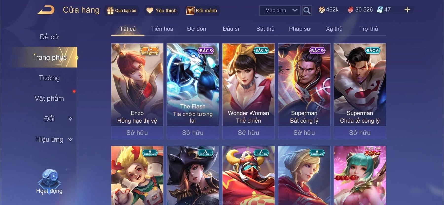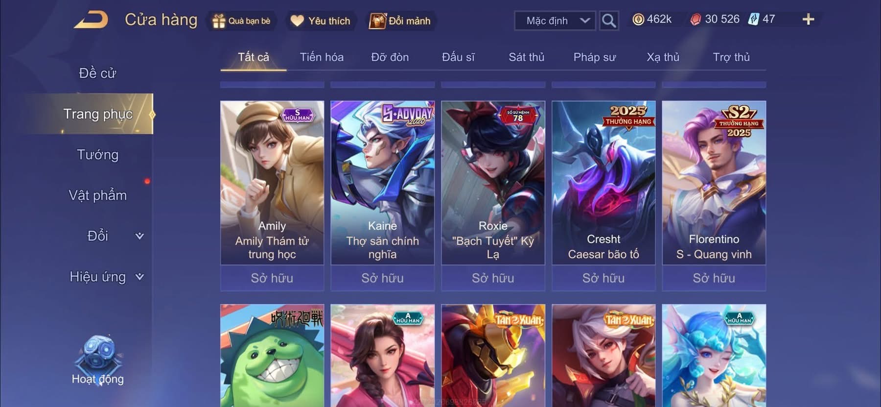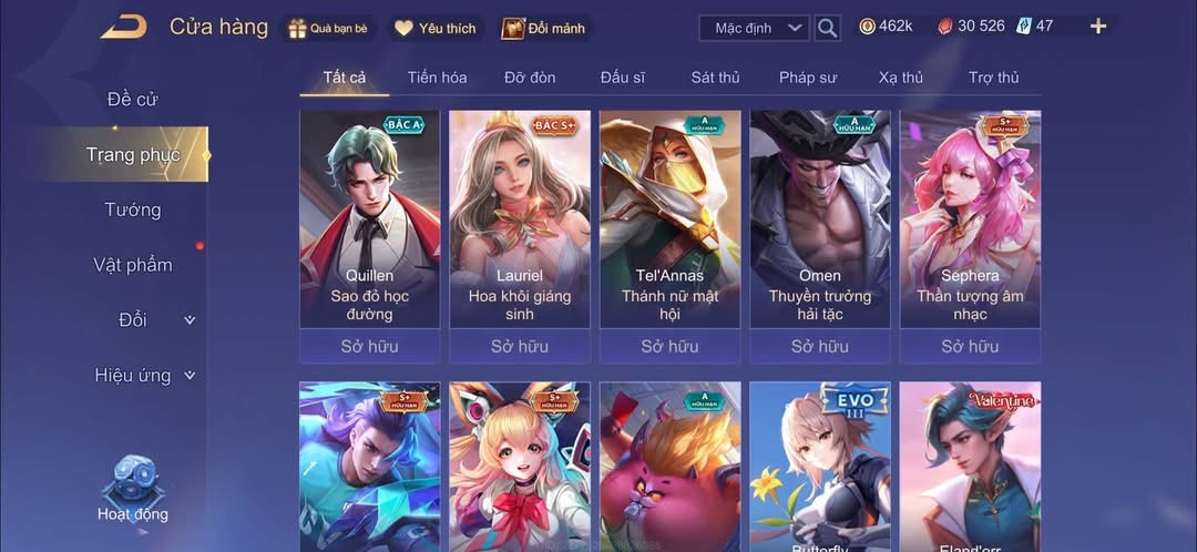 Nổi bật: Billow + baron tết . flo hổ phách . enzo bạch hổ . nhiều skin vip