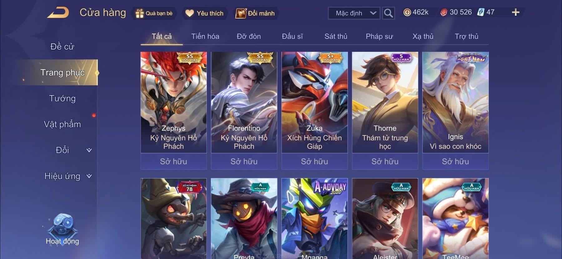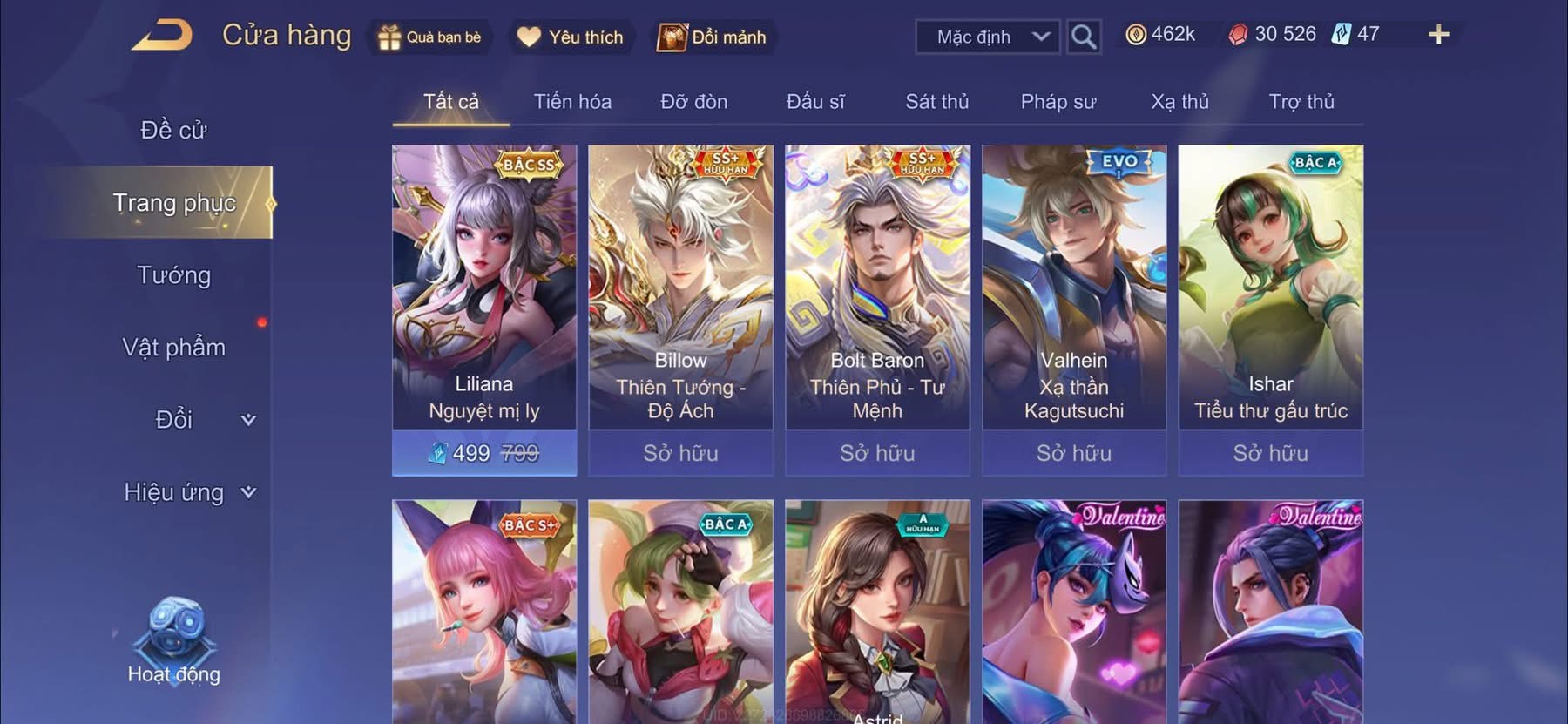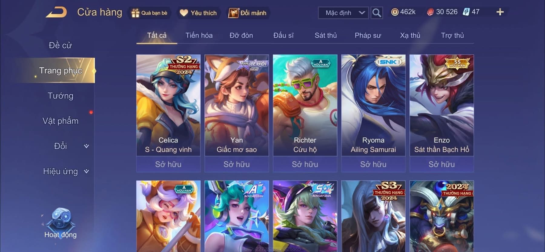 Nổi bật: Billow + baron tết . flo hổ phách . enzo bạch hổ . nhiều skin vip