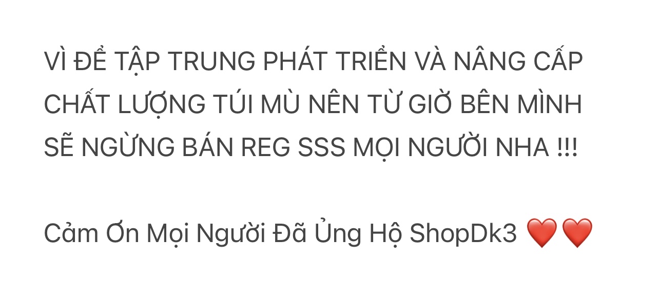 VÌ ĐỂ TẬP TRUNG PHÁT TRIỂN VÀ NÂNG CẤP CHẤT LƯỢNG TÚI MÙ NÊN TỪ GIỜ BÊN MÌNH SẼ NGỪNG BÁN REG SSS MỌI NGƯỜI NHA !!!