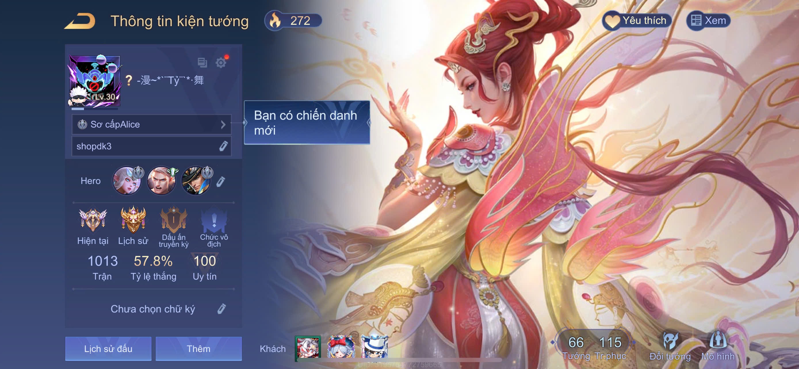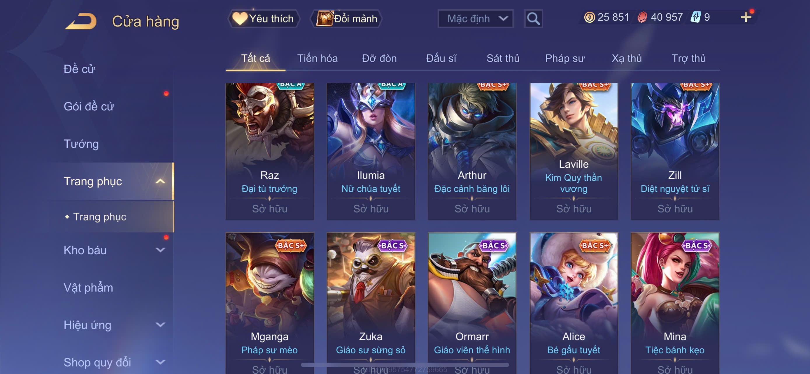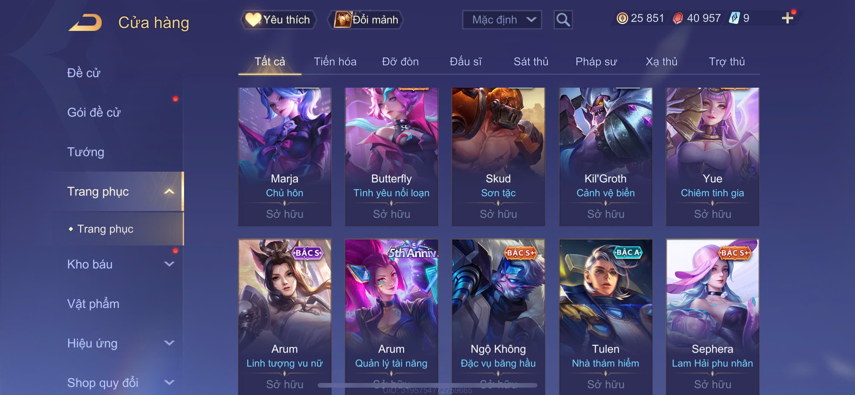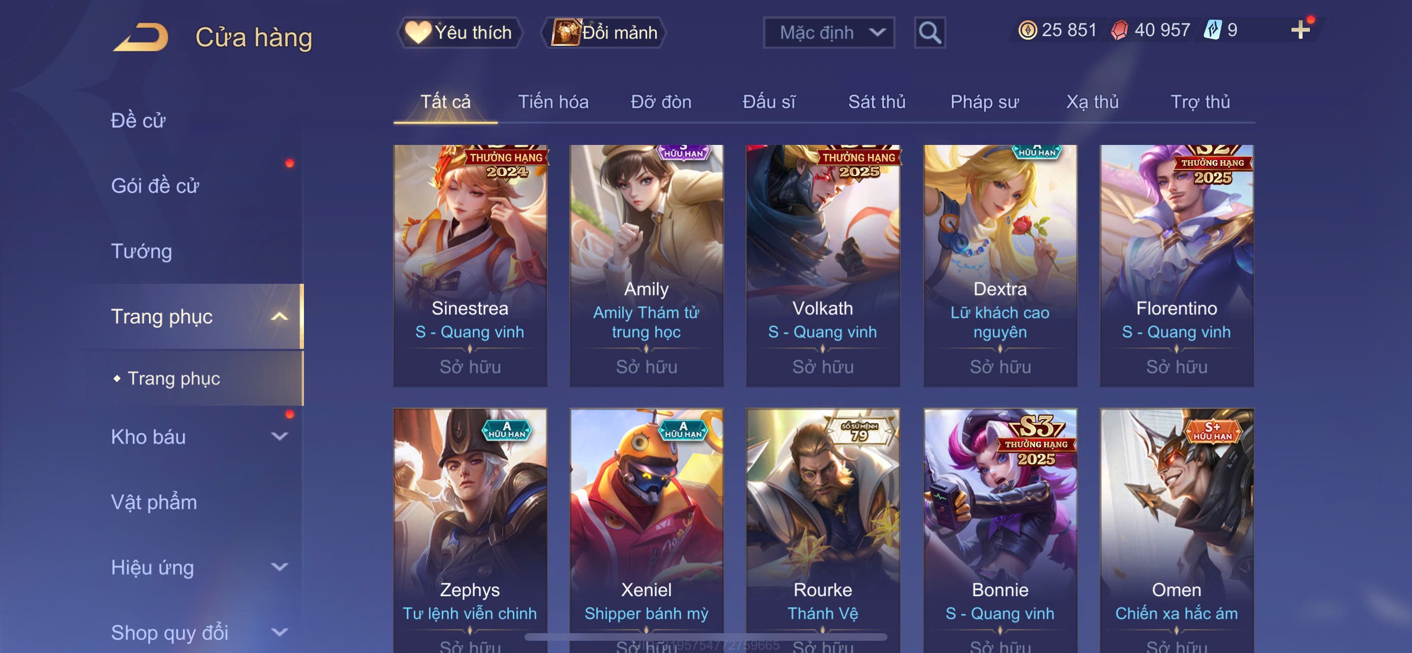 bật: rất nhiều skin sổ sứ mệnh , combo omen hắc ám quang minh , roui thanh long , tell hổ phách . dư 20 thẻ đổi tên . Nói chung là Rất nhiều skin bậc S Xịn