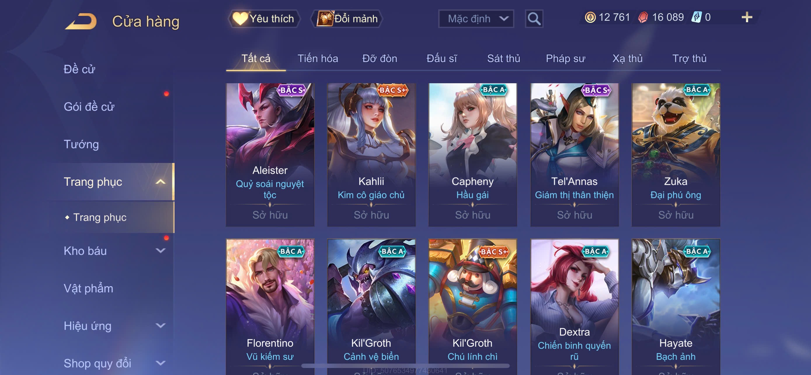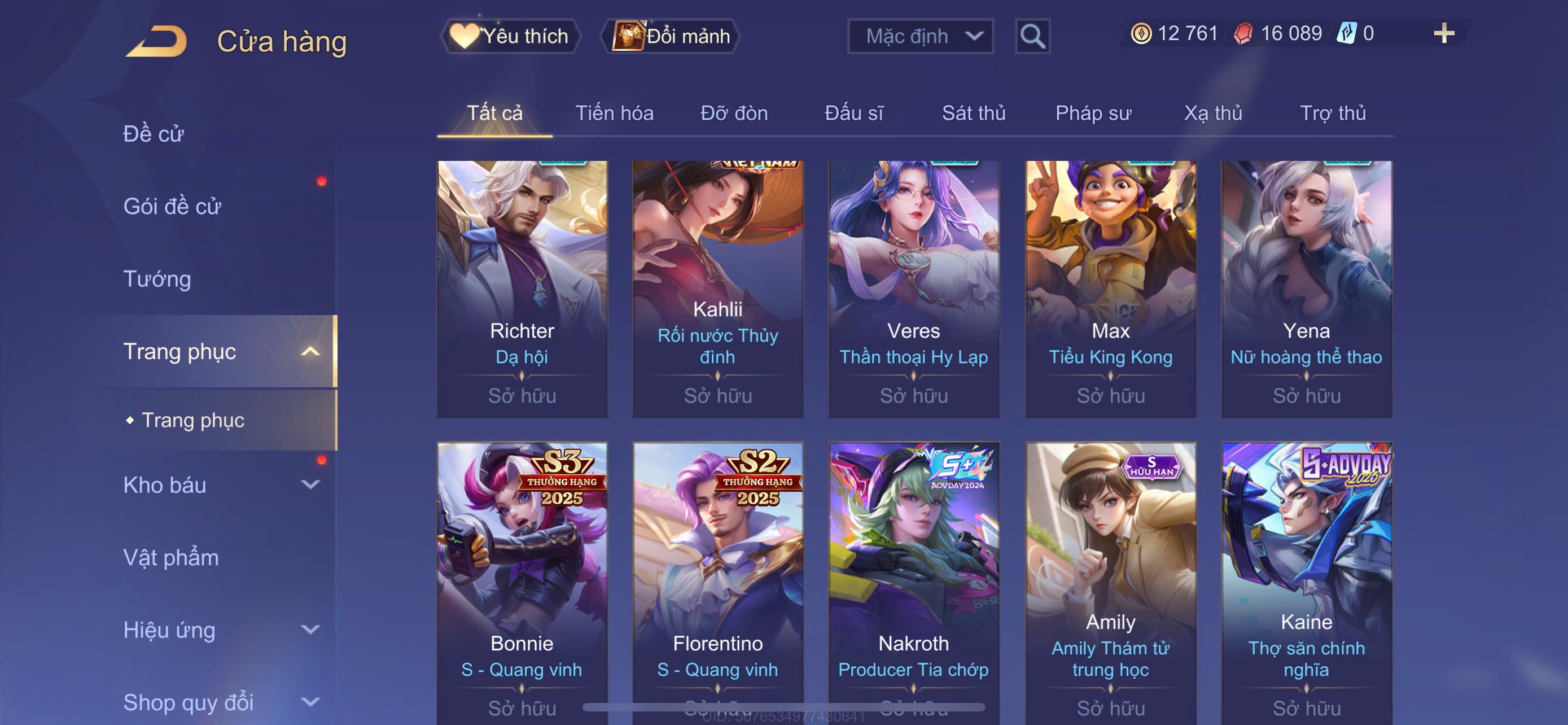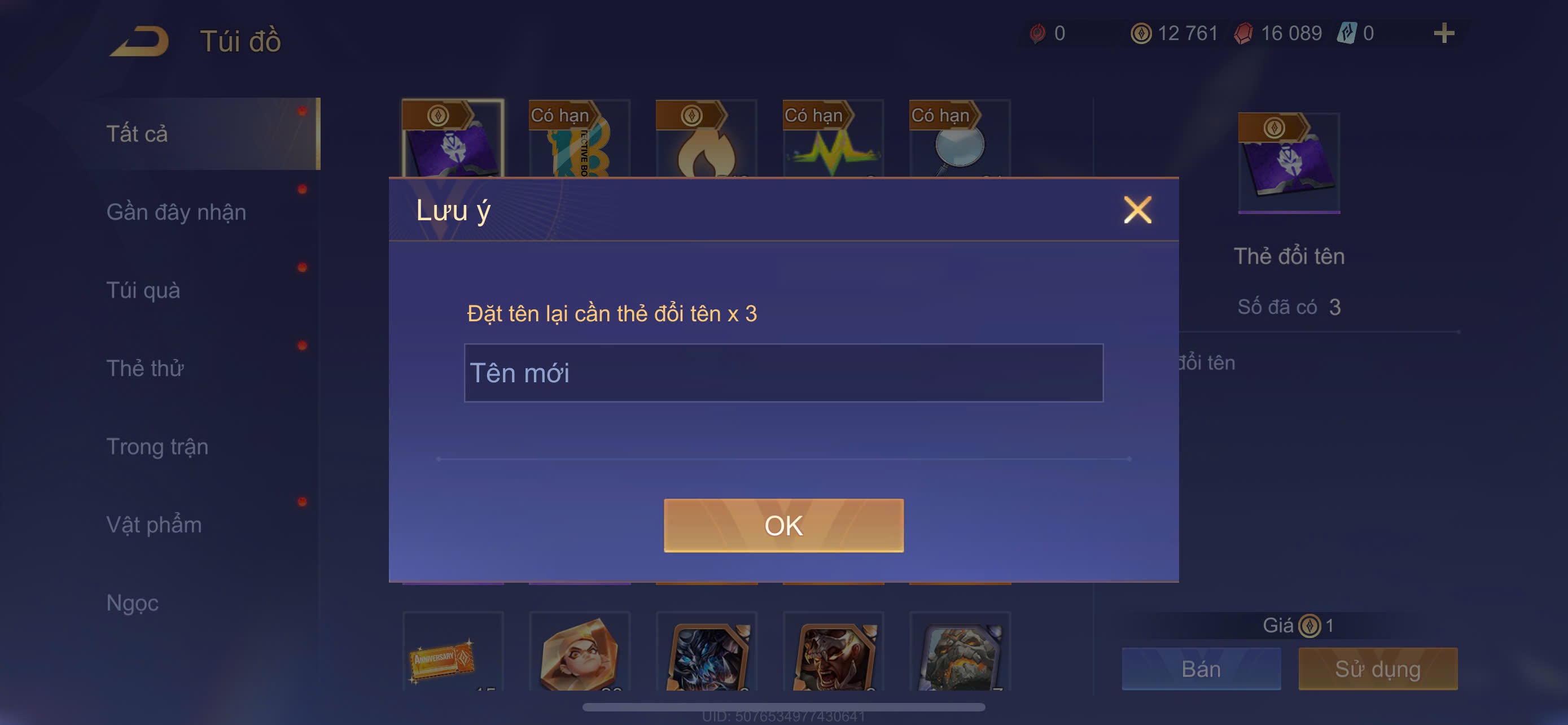 Nổi bật: Flo Tinh Hệ , Ryo Thanh Long , Tulen SS và nhiều skin khác . đủ thẻ đổi tên