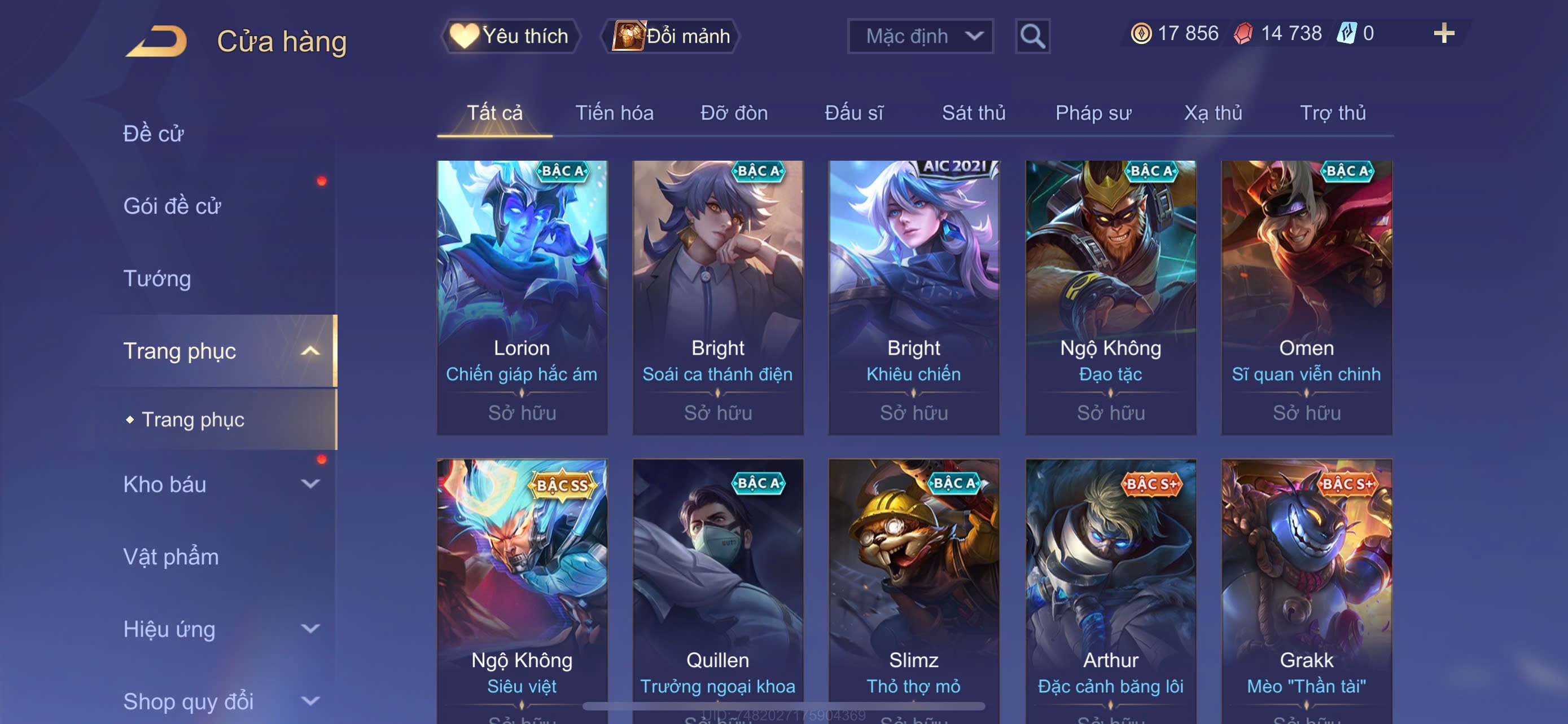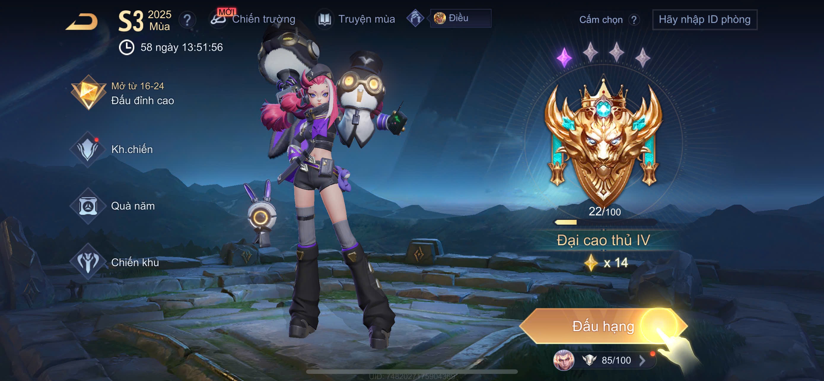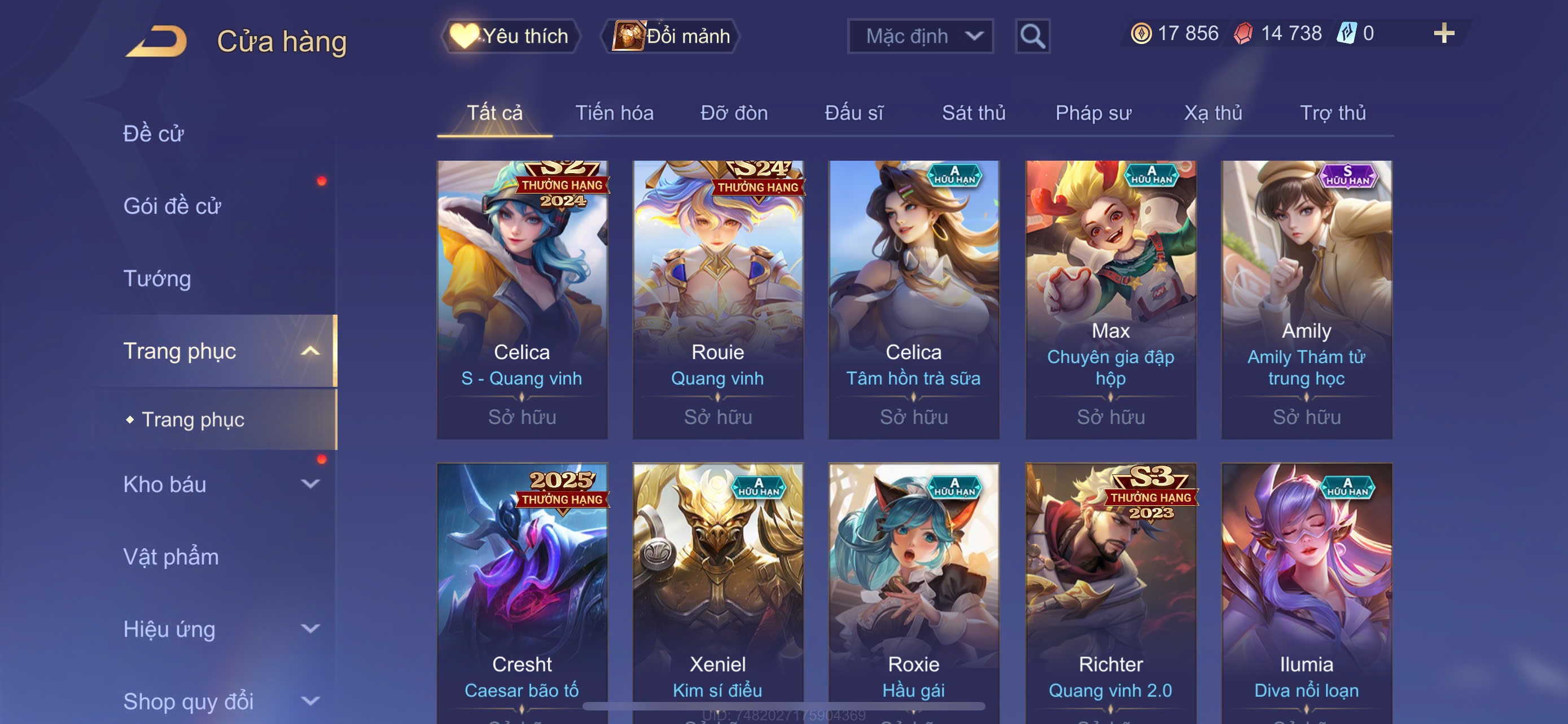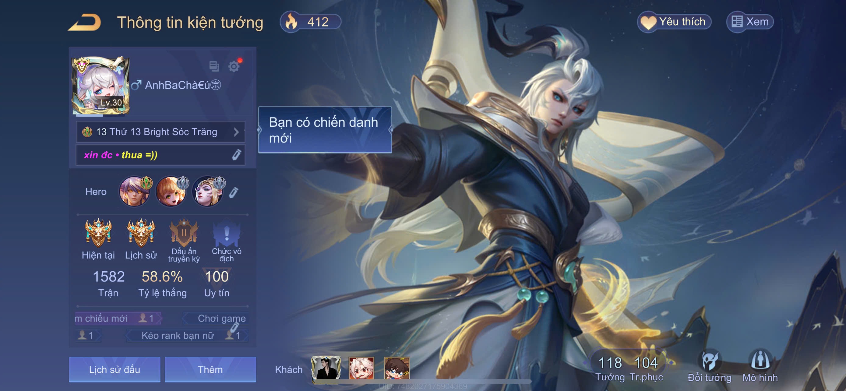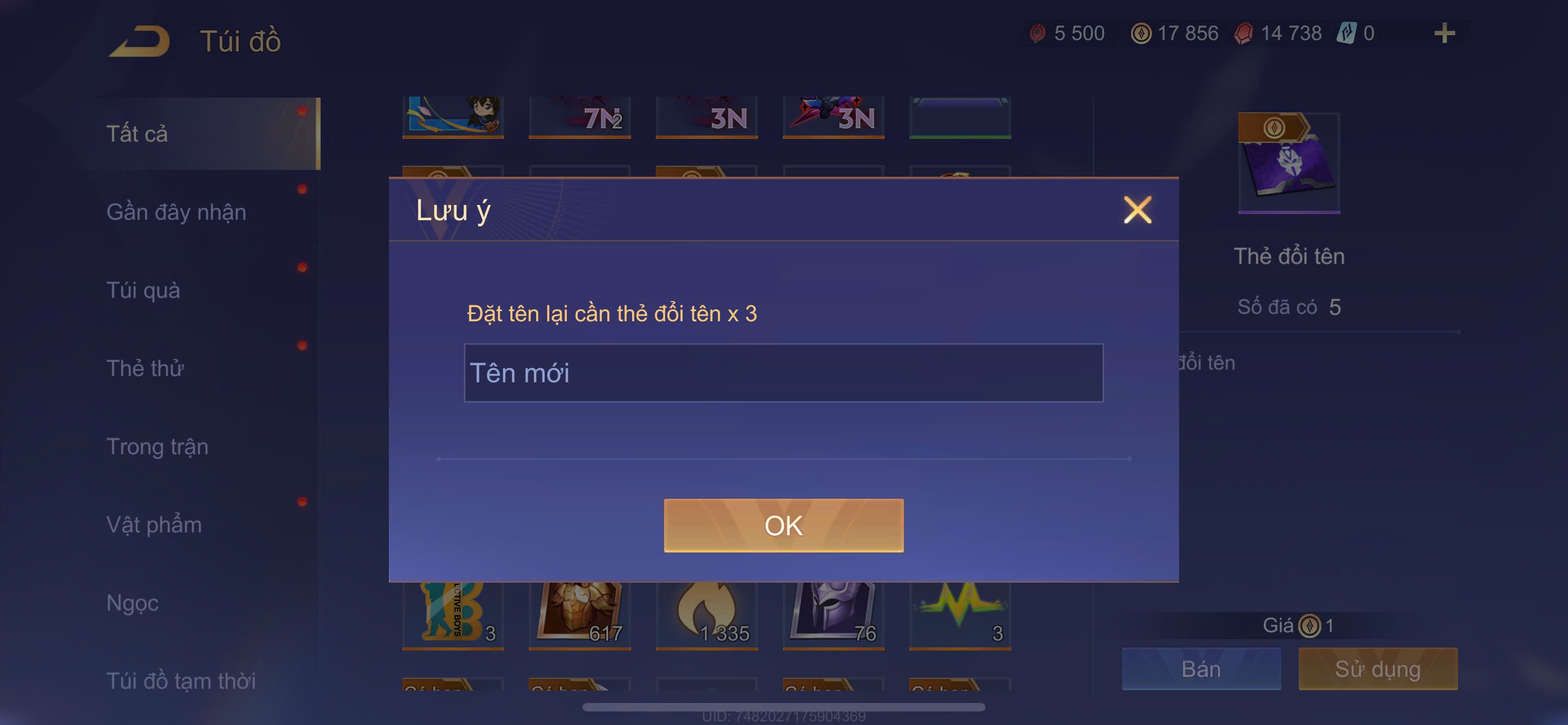 Nổi bật: 3 Skin SS . Nhiều Skin Bậc S Xịn , Dư thẻ đổi tên . rank cao thủ