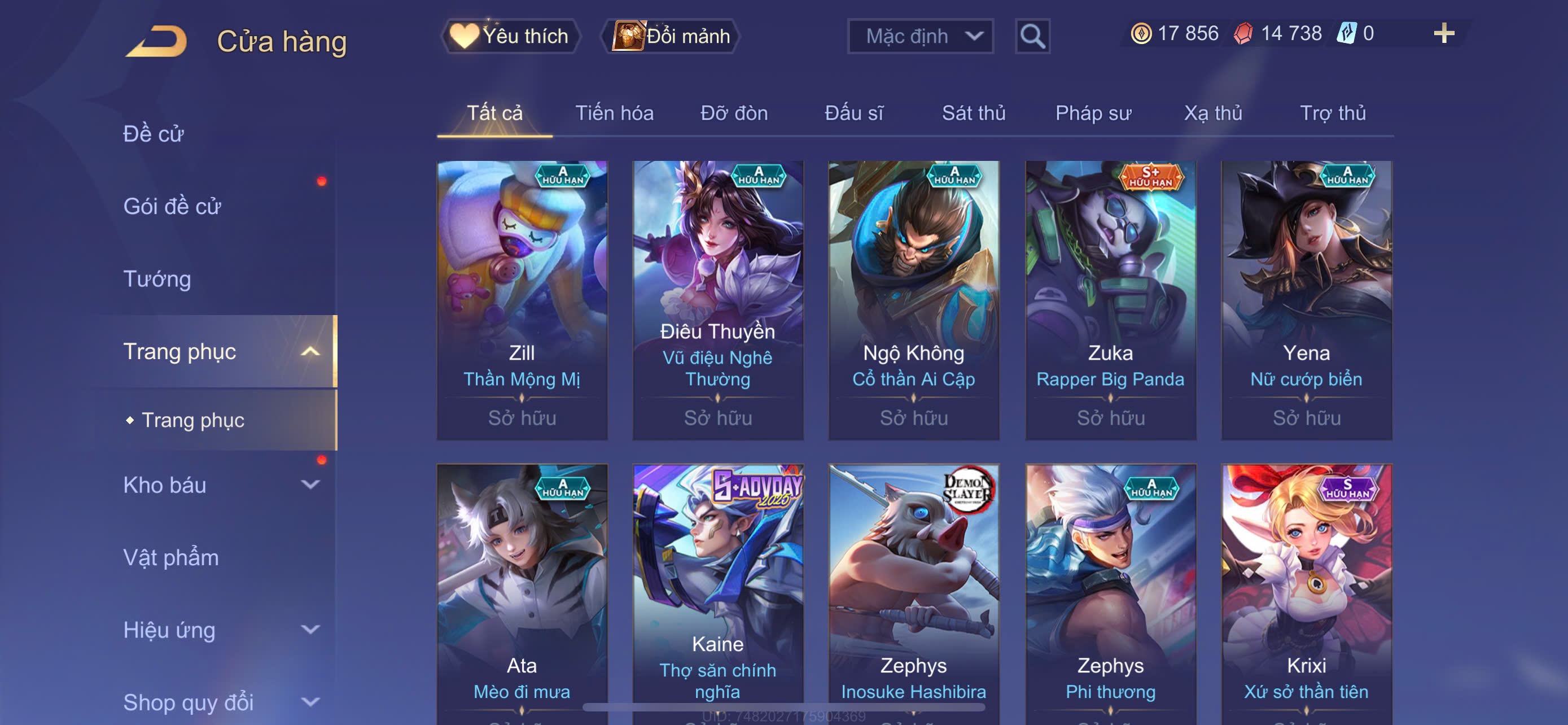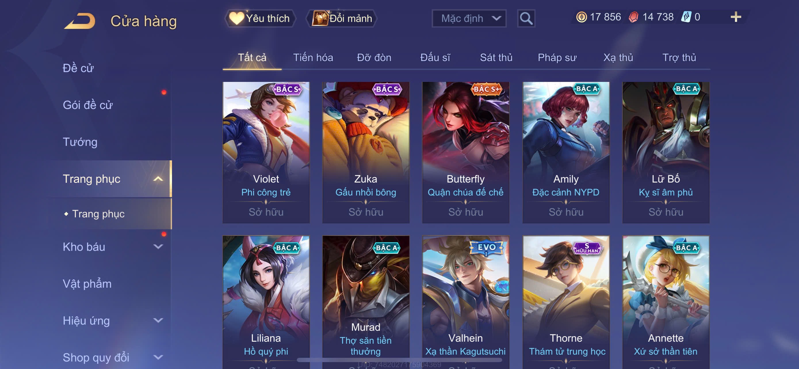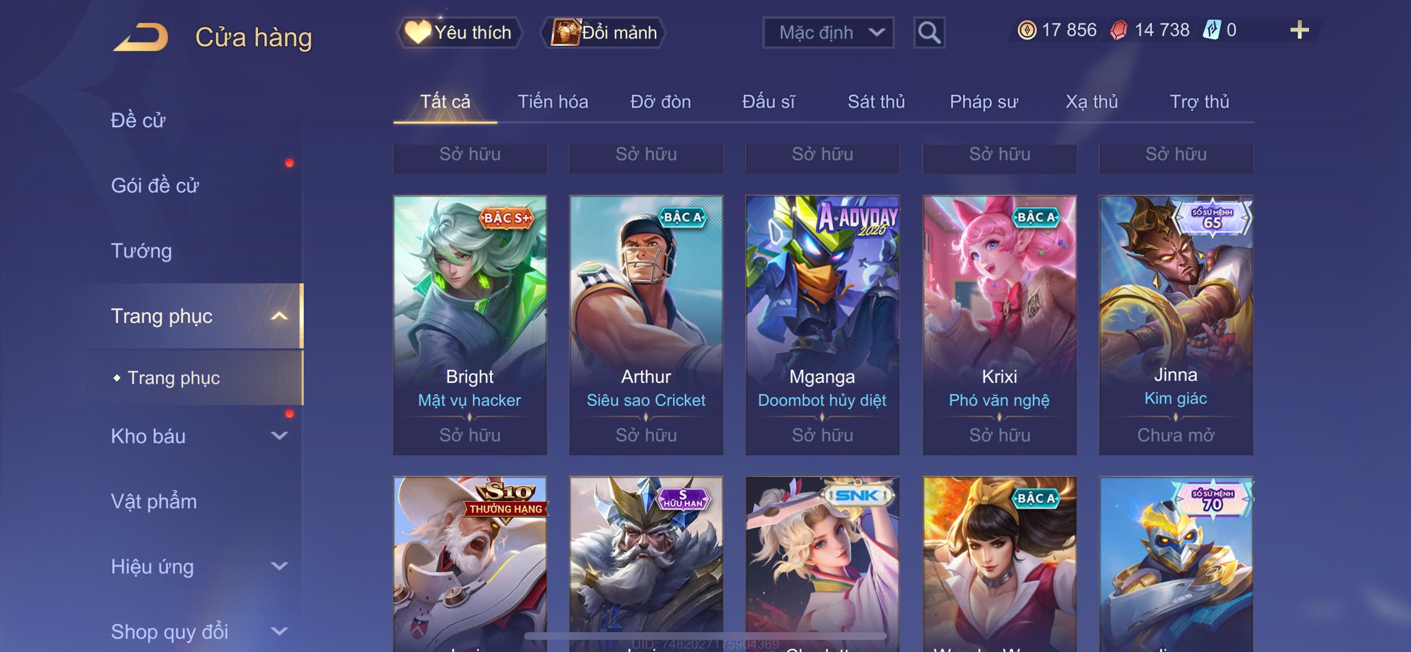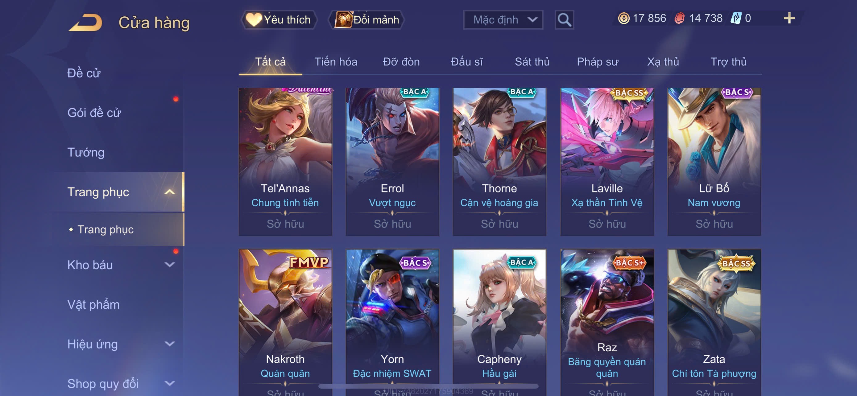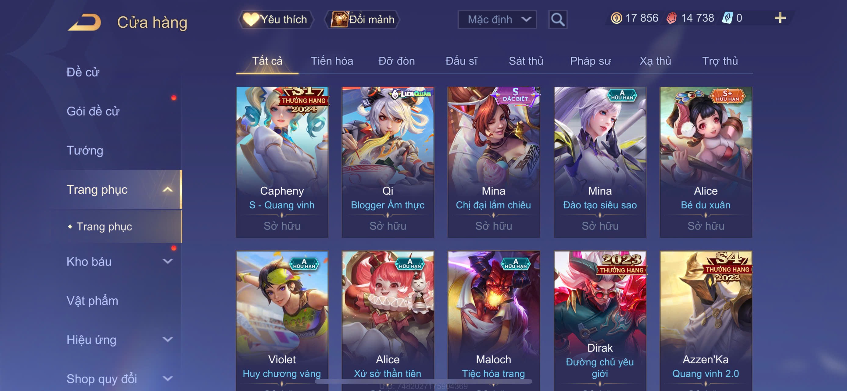 Nổi bật: 3 Skin SS . Nhiều Skin Bậc S Xịn , Dư thẻ đổi tên . rank cao thủ