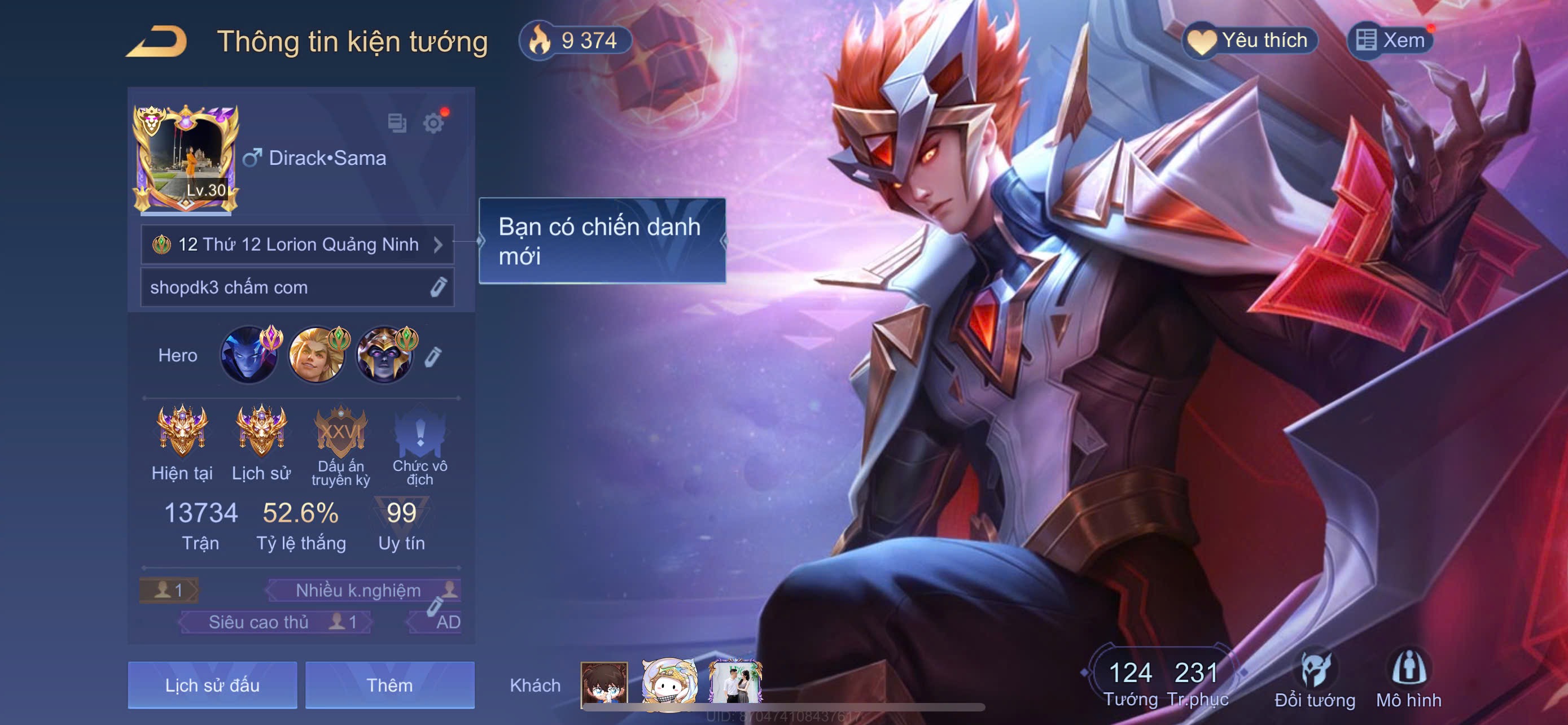 Nổi bật: Rank 73 Sao - Champ Lorion . Full Tướng