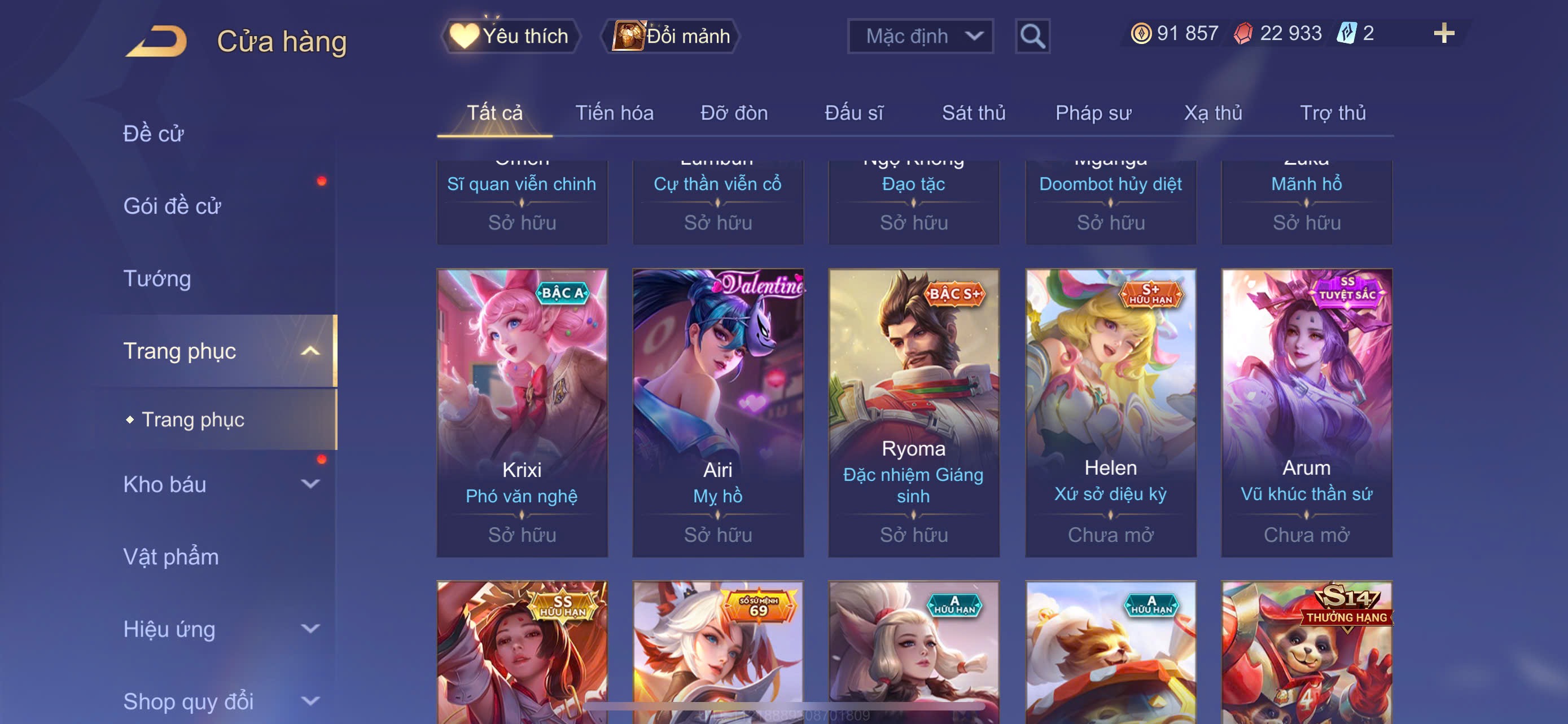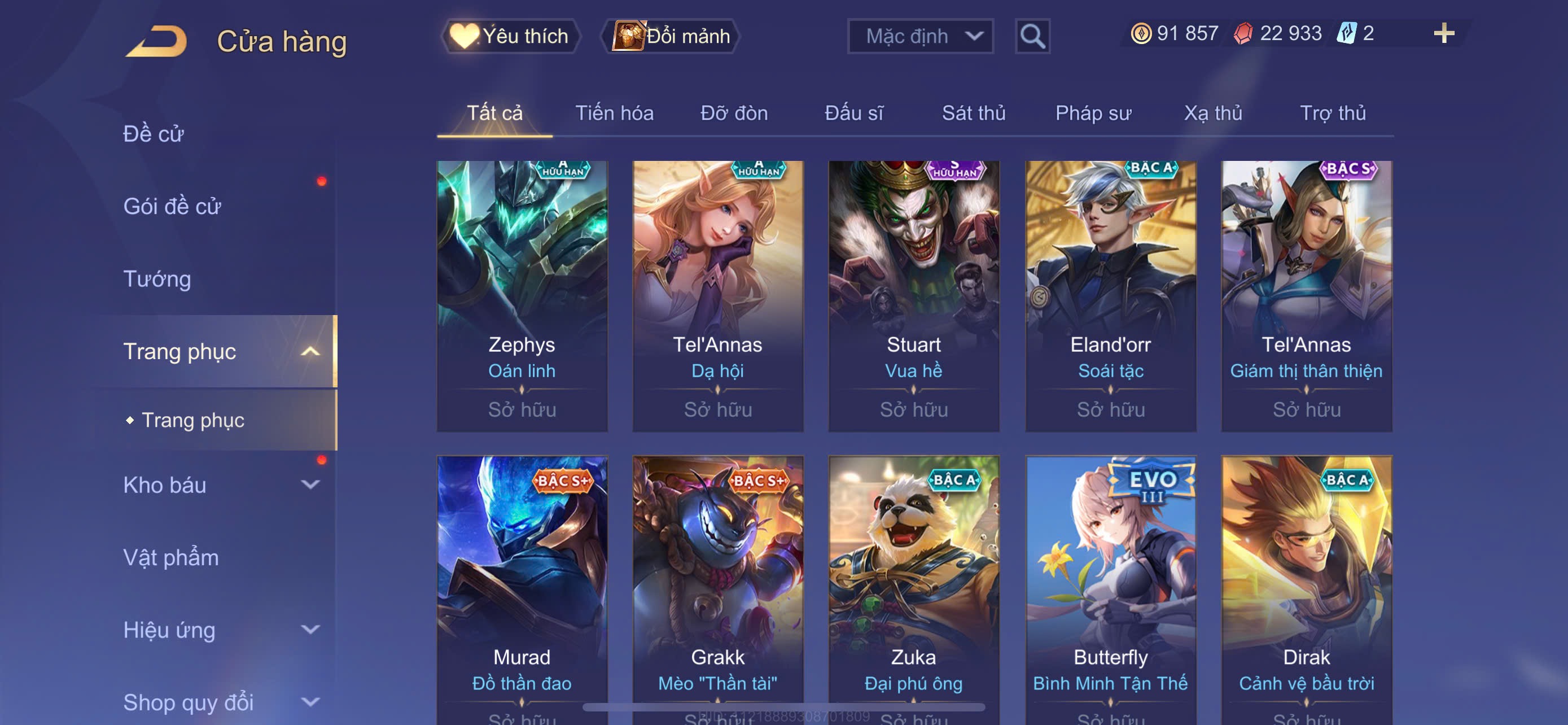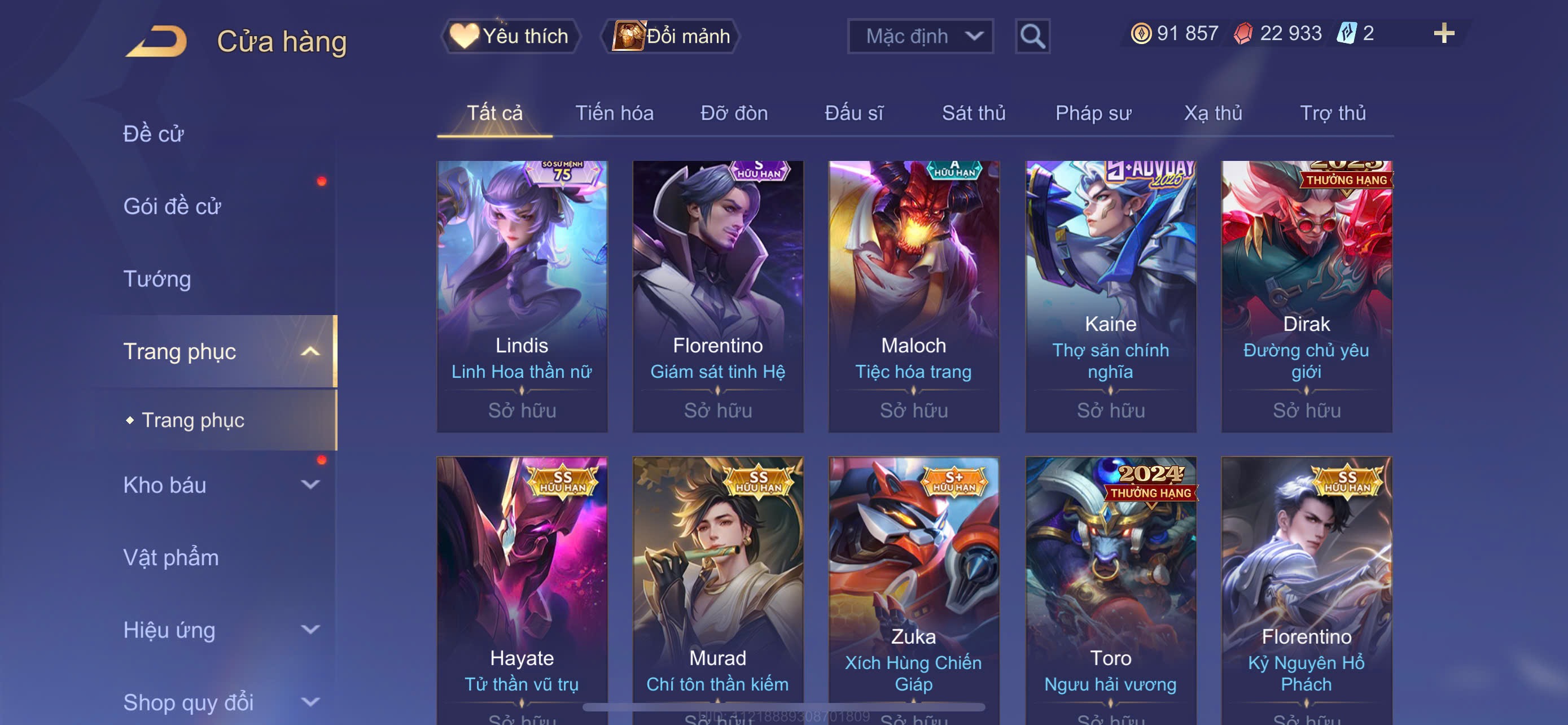 Nổi bật: Flo kỷ nguyên - Mu chí tôn - Hayate tử thần . Và nhiều skin Khác . Rank cao