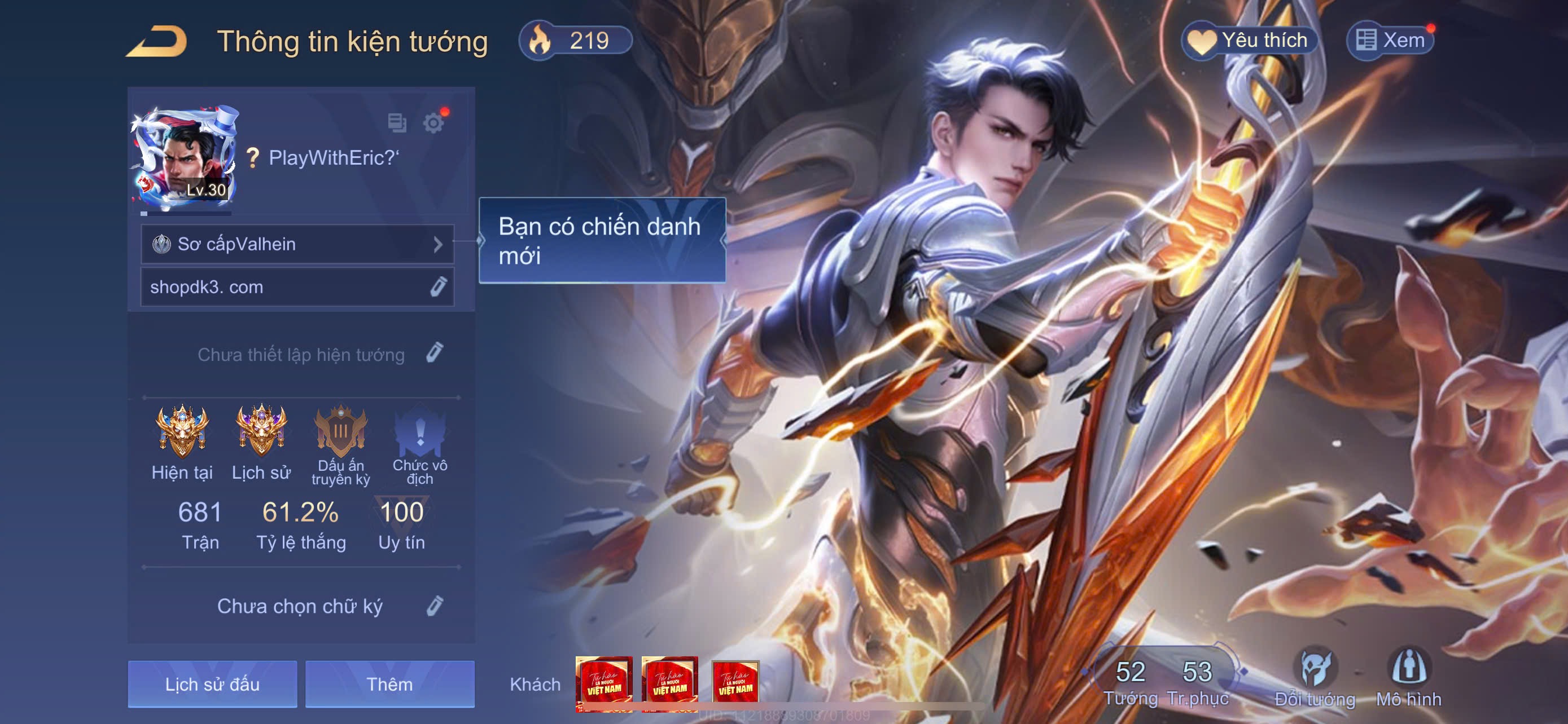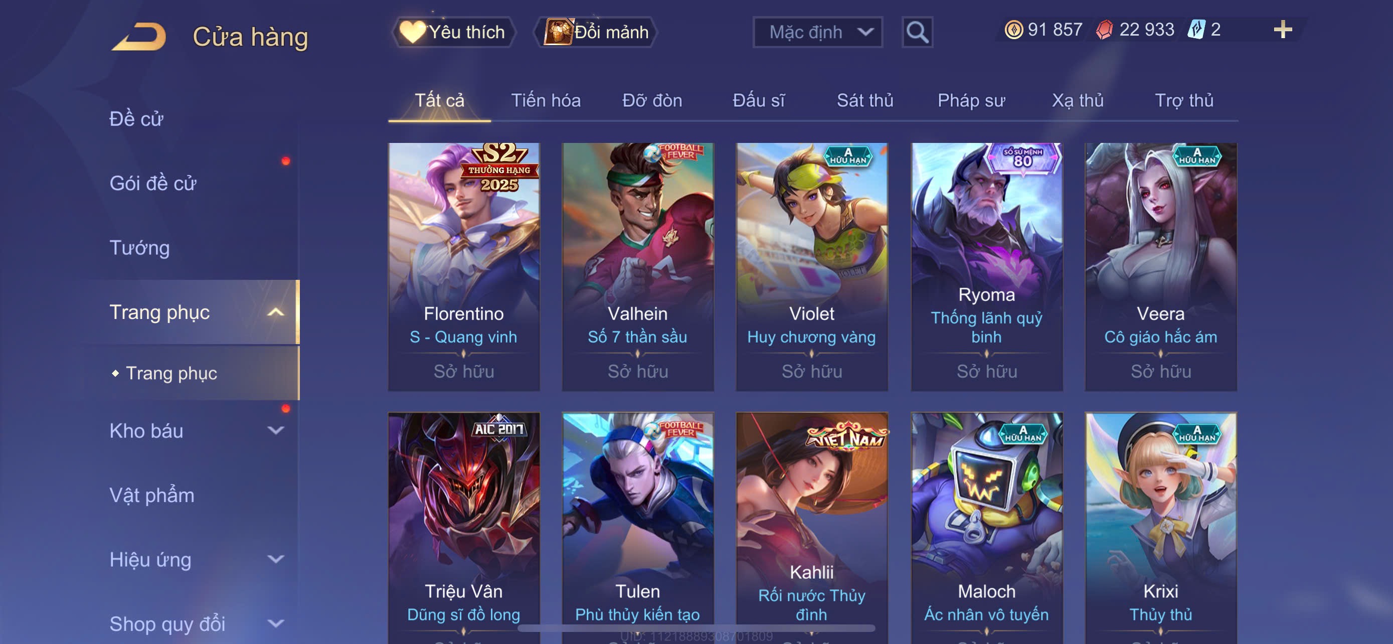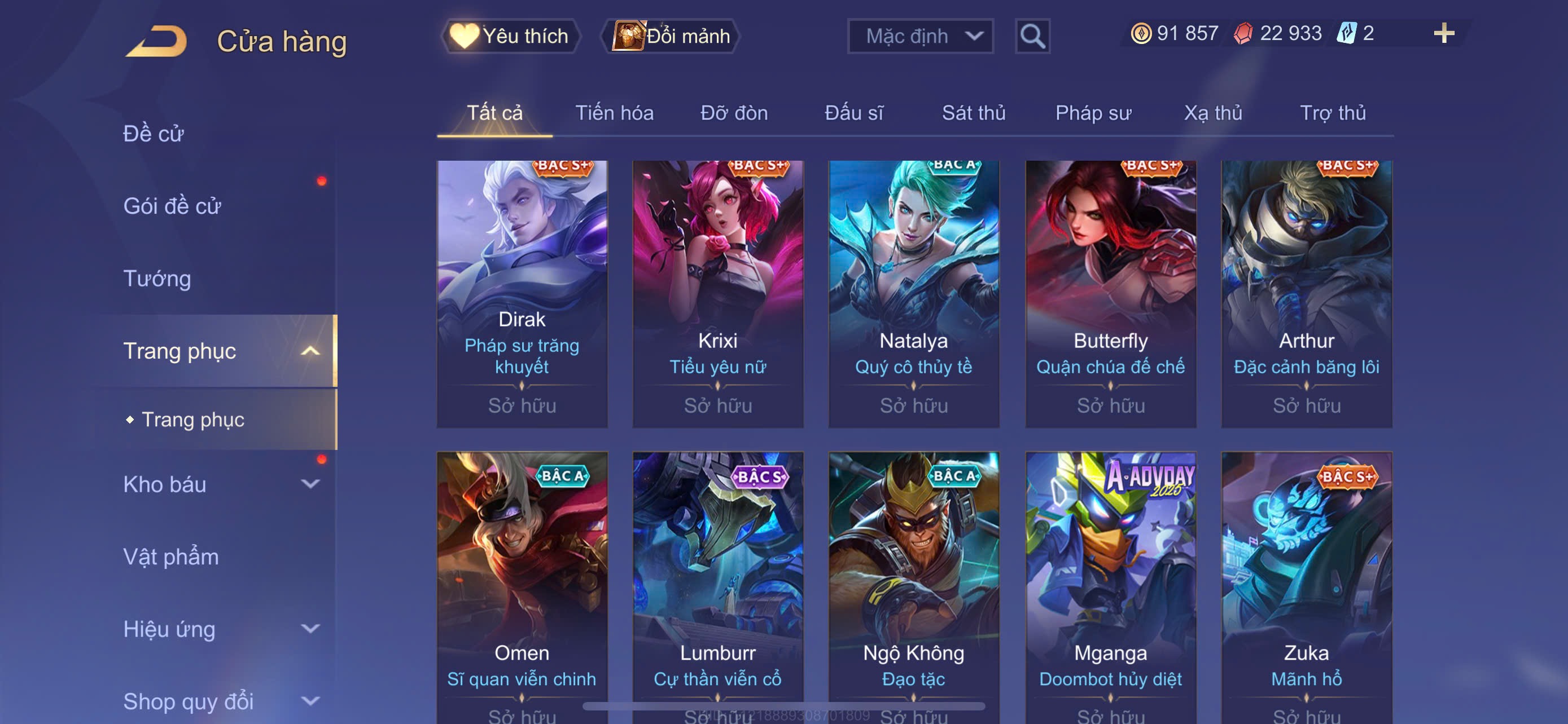 Nổi bật: Flo kỷ nguyên - Mu chí tôn - Hayate tử thần . Và nhiều skin Khác . Rank cao