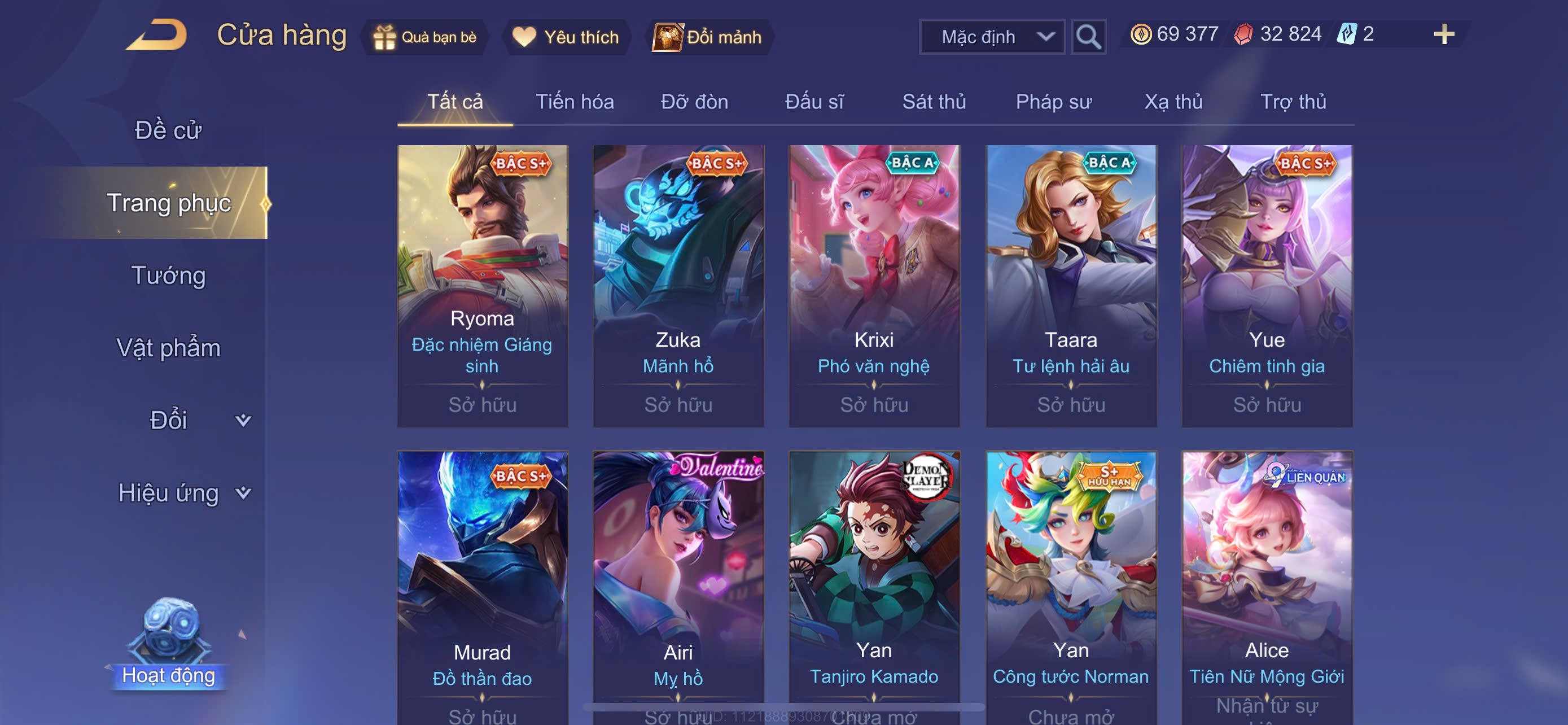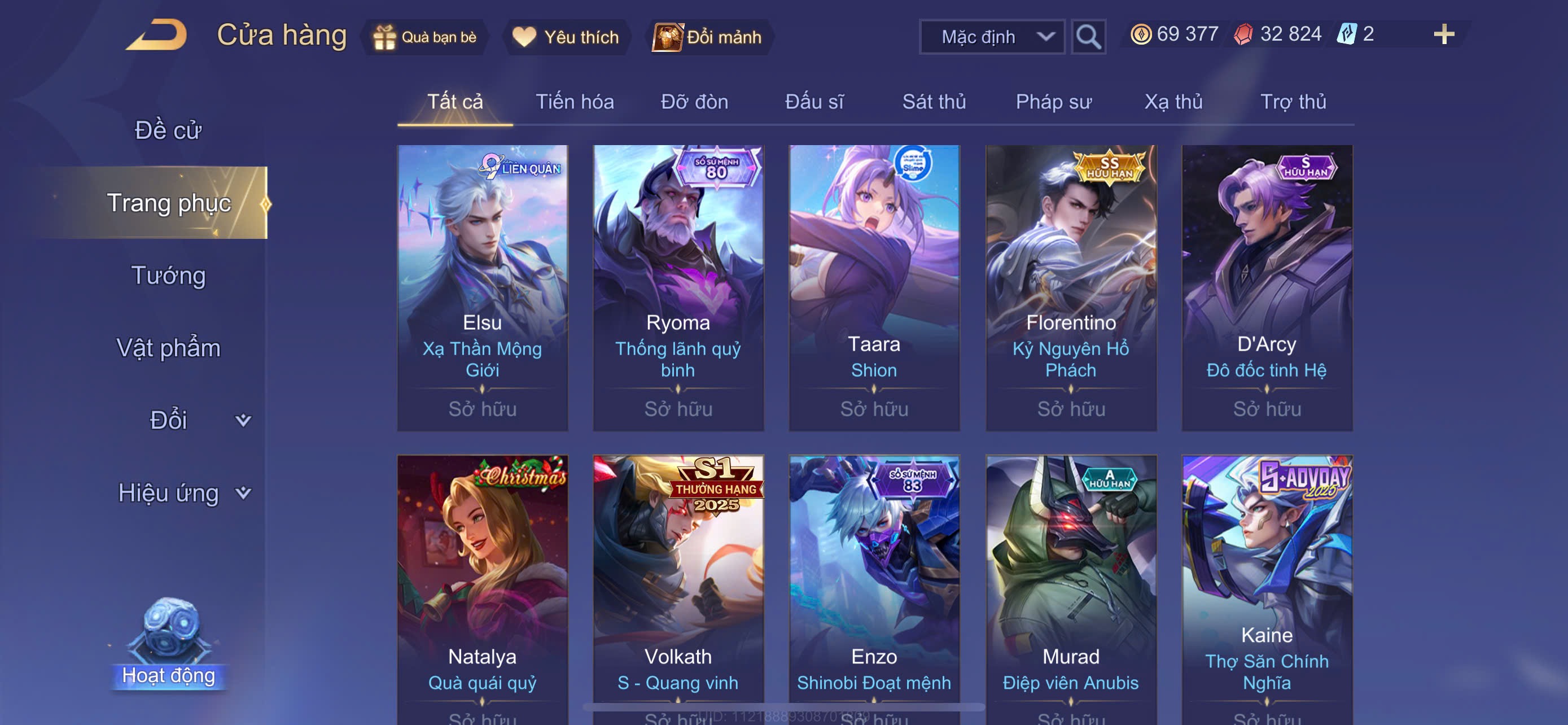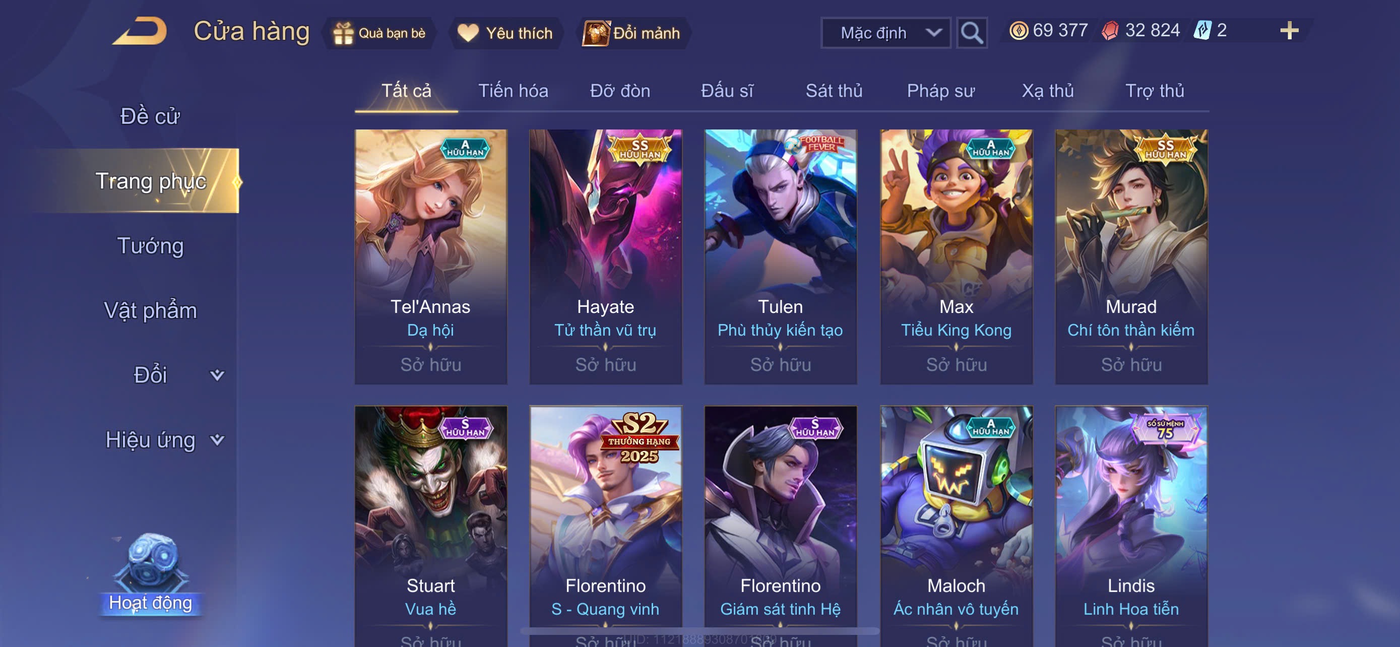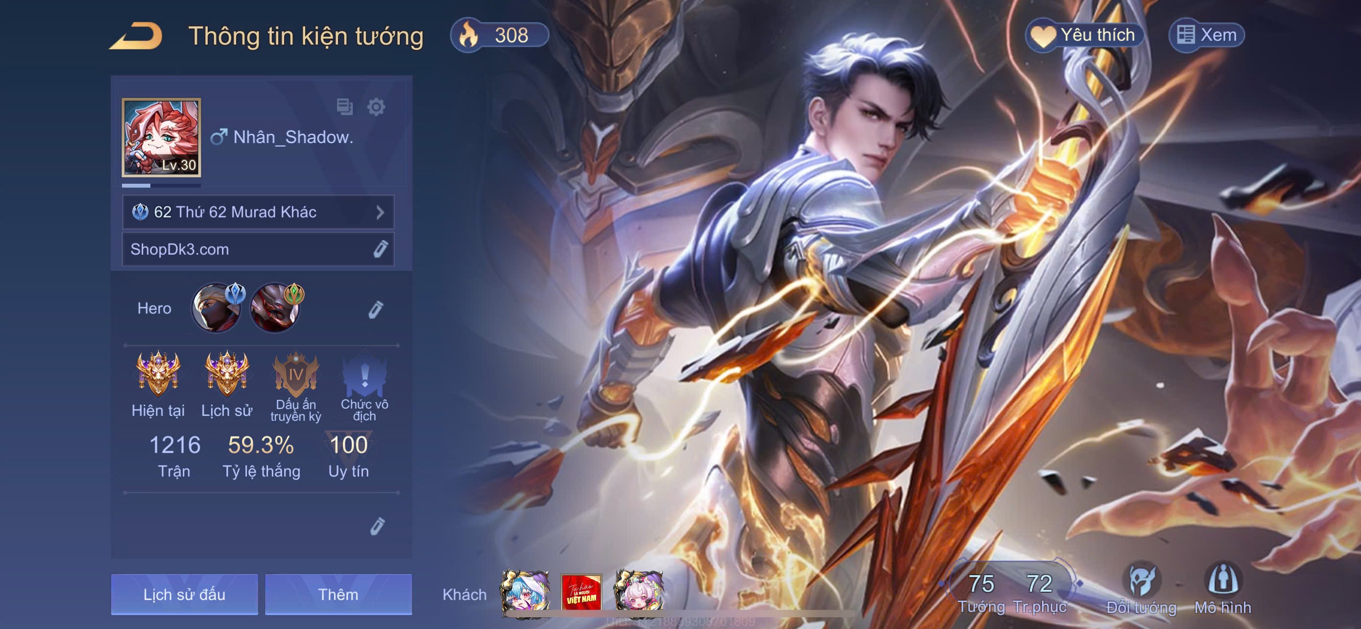 Nổi bật: Flo SS - Hayate Tử Thần - Mu chí tôn . Và nhiều skin khác . có top miền murad