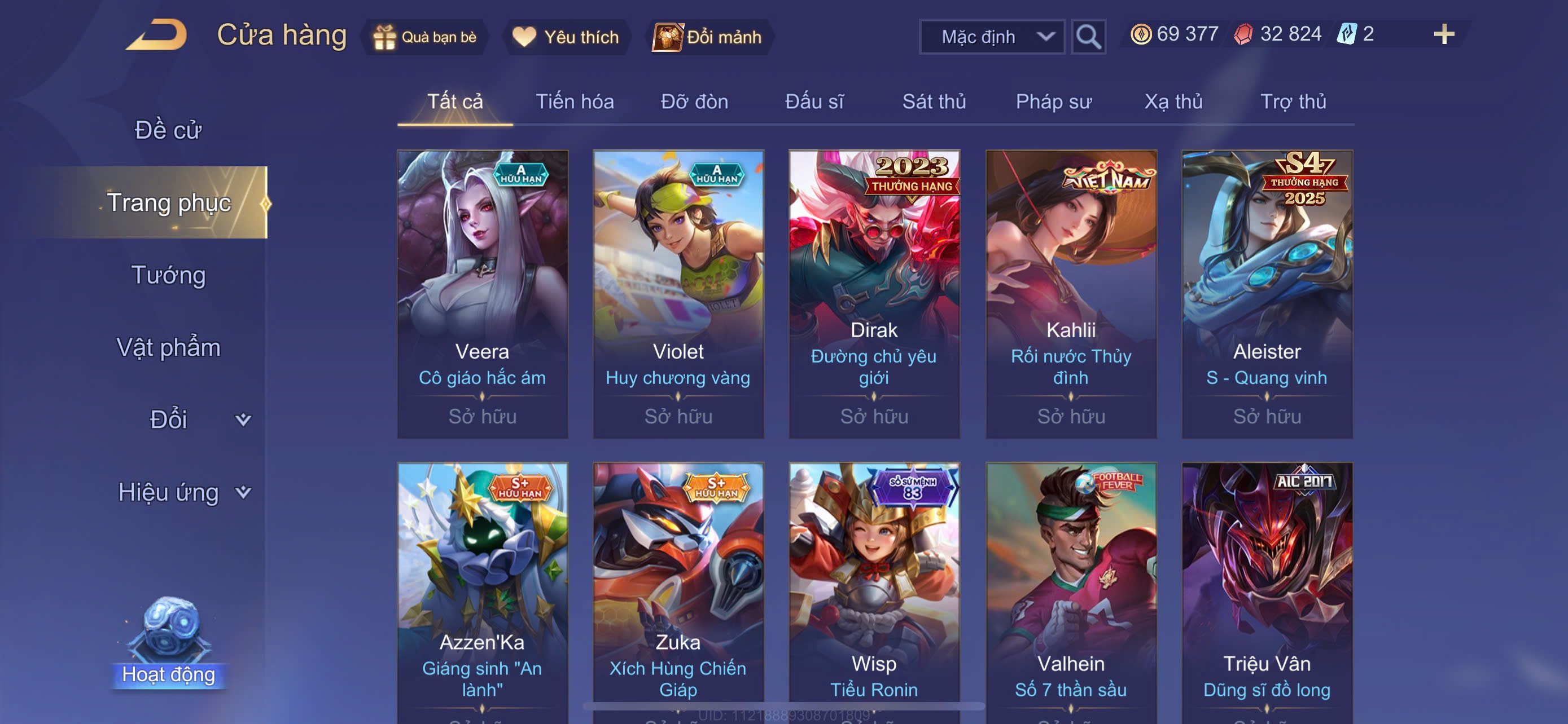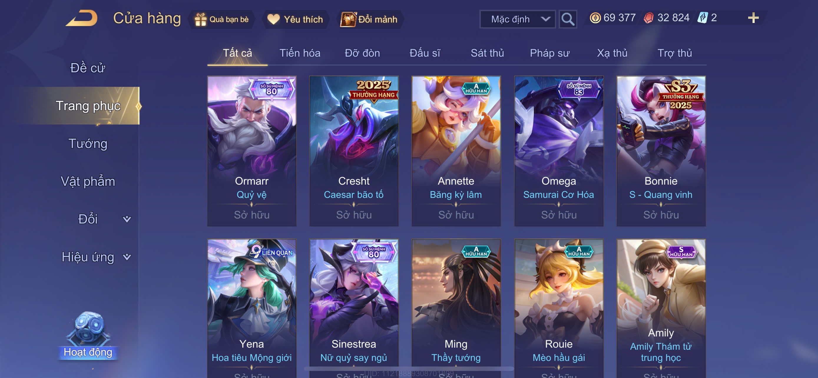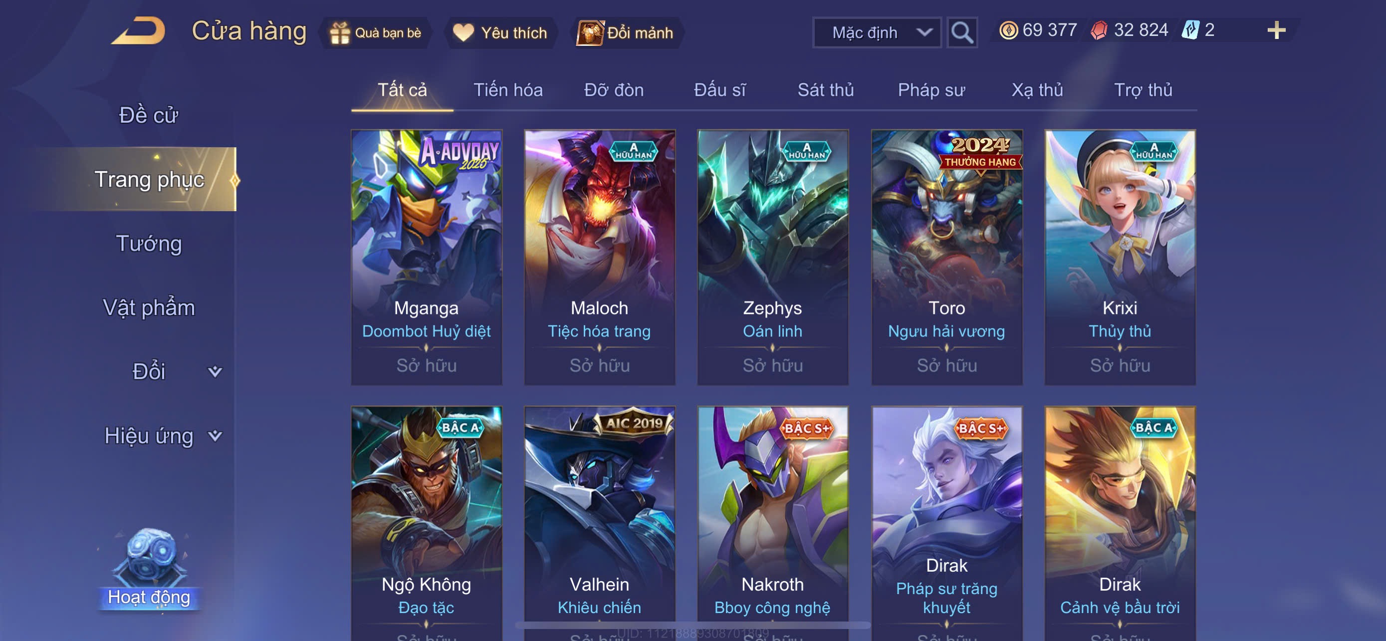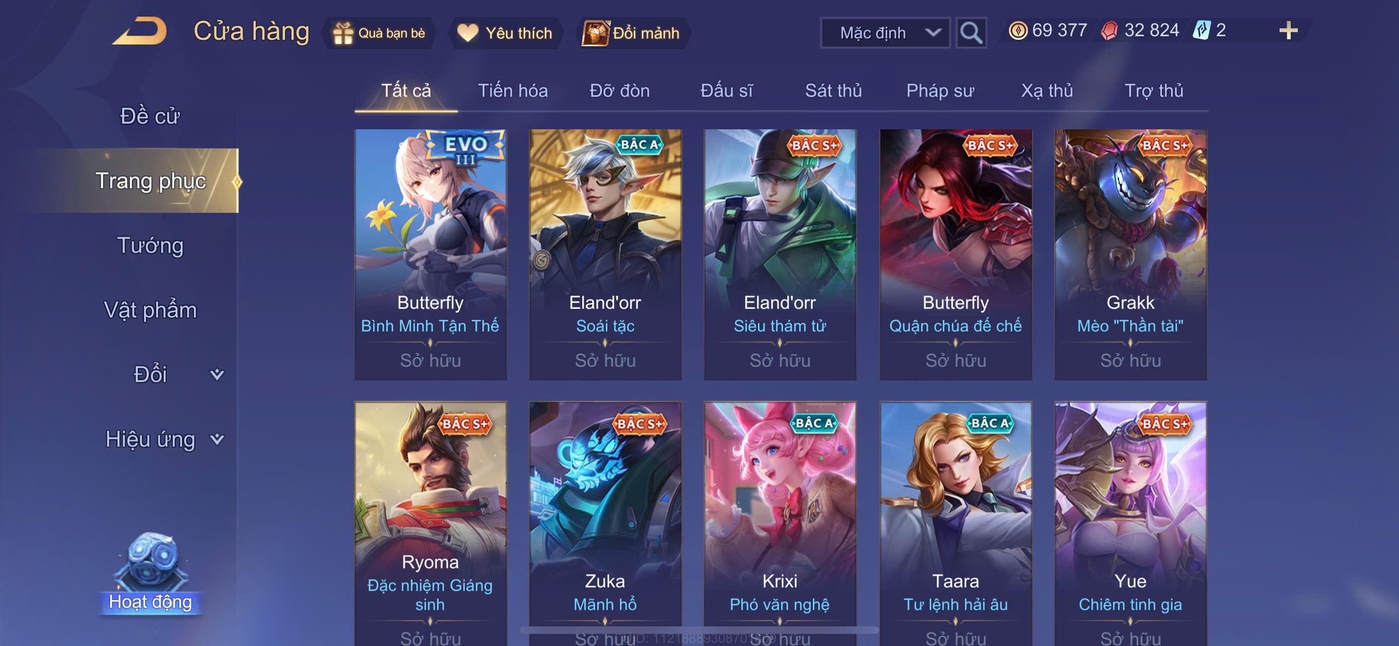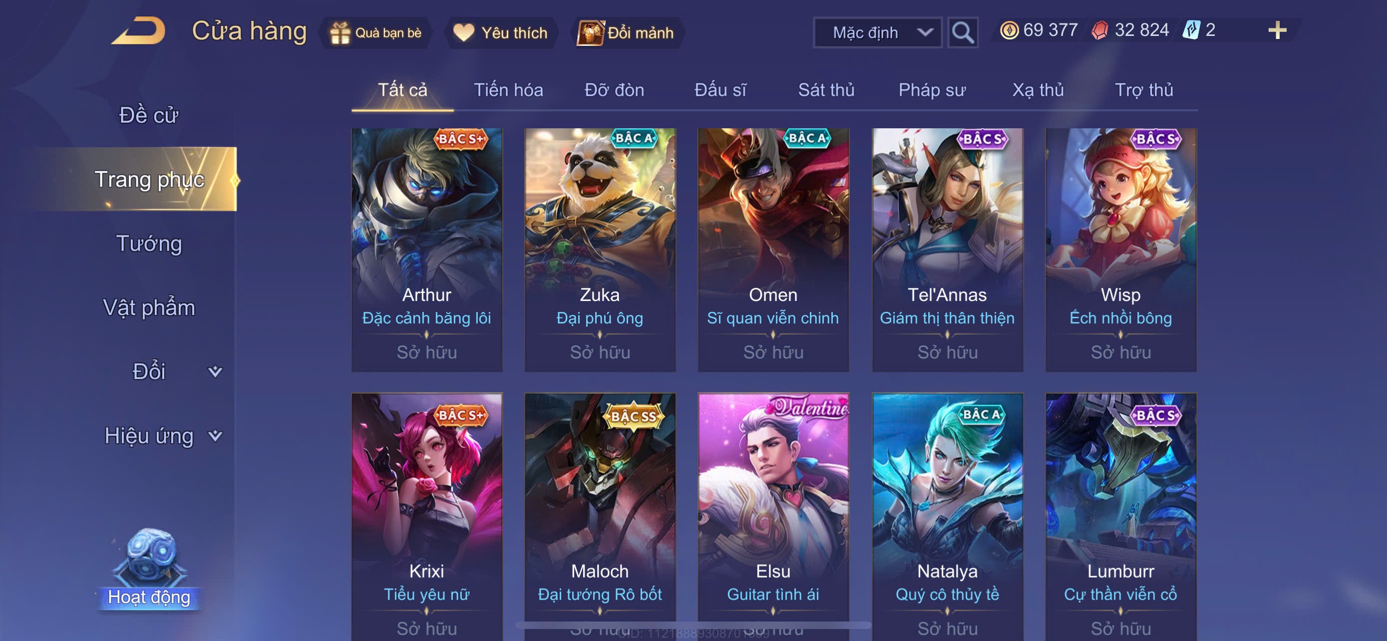 Nổi bật: Flo SS - Hayate Tử Thần - Mu chí tôn . Và nhiều skin khác . có top miền murad